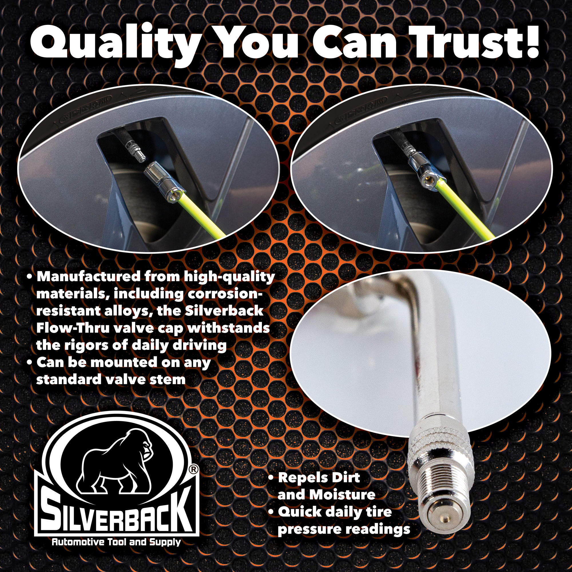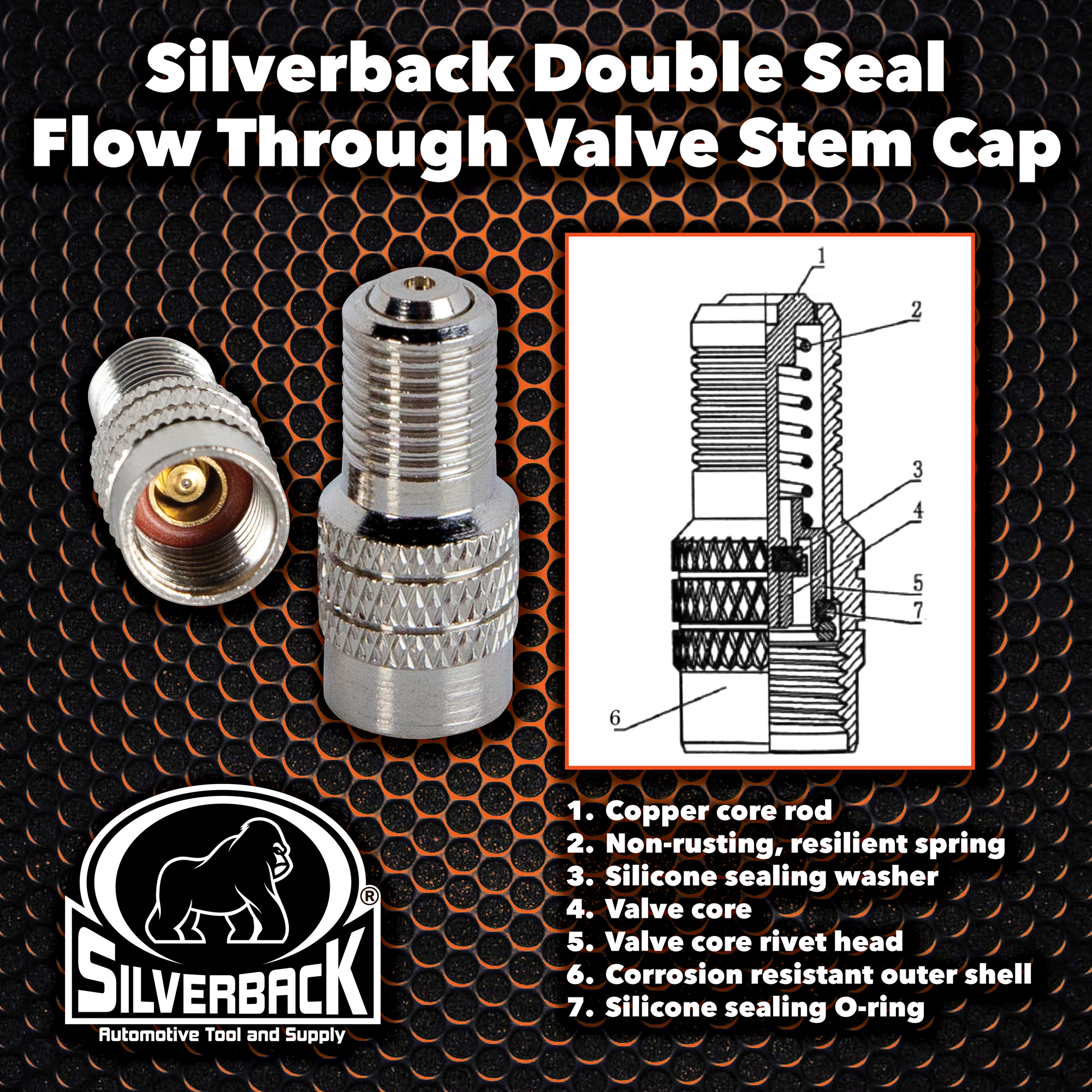 - Built to Last: Manufactured from high-quality materials, including corrosion-resistant alloys, the Silverback Flow-Thru valve cap withstands the rigors of daily driving. Whether you’re navigating city streets or going cross country, the Double Seal Flow-Thru Valve Cap won’t let you down.