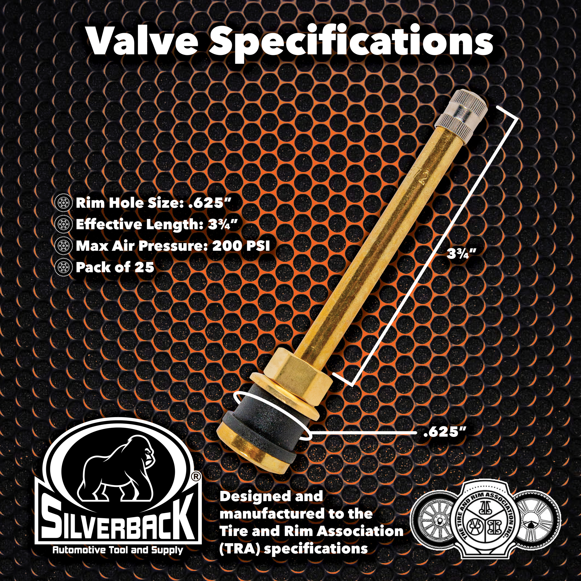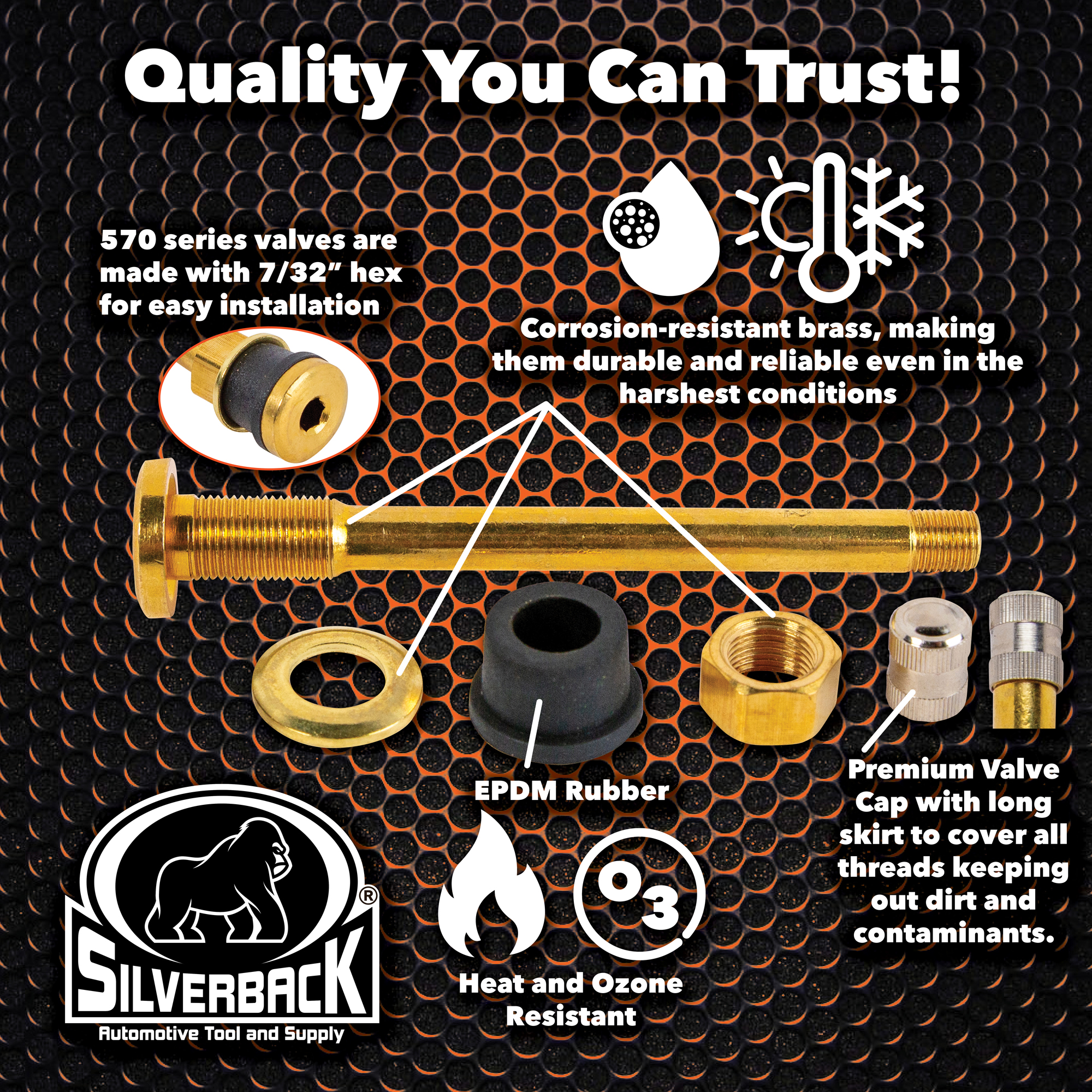 Silverback TR572 Brass Truck Tire Valve. Made with Premium Brass and EPDM Ozone Resistant Rubber. Pack of 25.